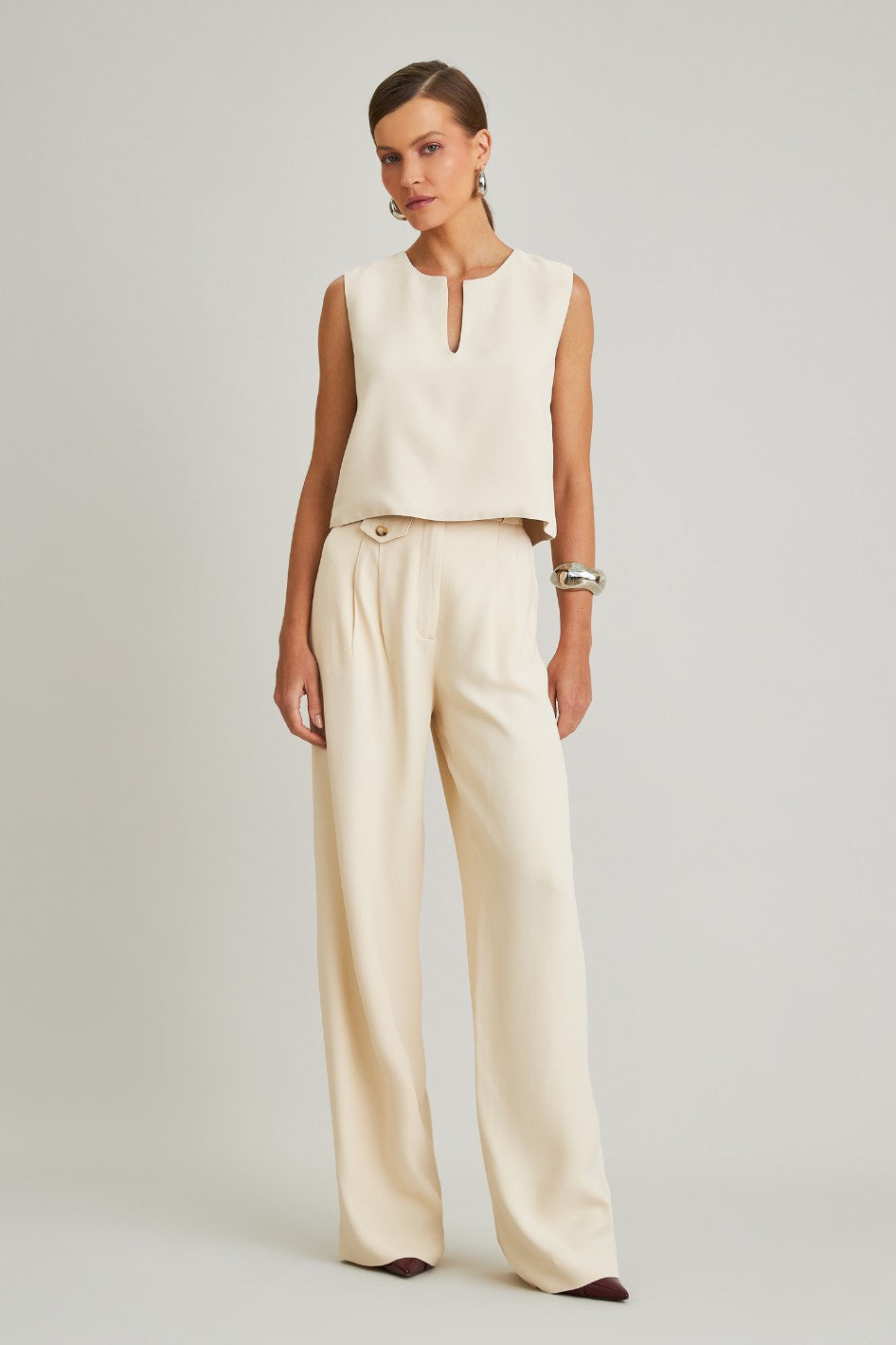 Feita em crepe de acetato, esta blusa sem mangas apresenta um delicado decote em V e uma modelagem mais solta, proporcionando conforto e estilo para diversas ocasiões.