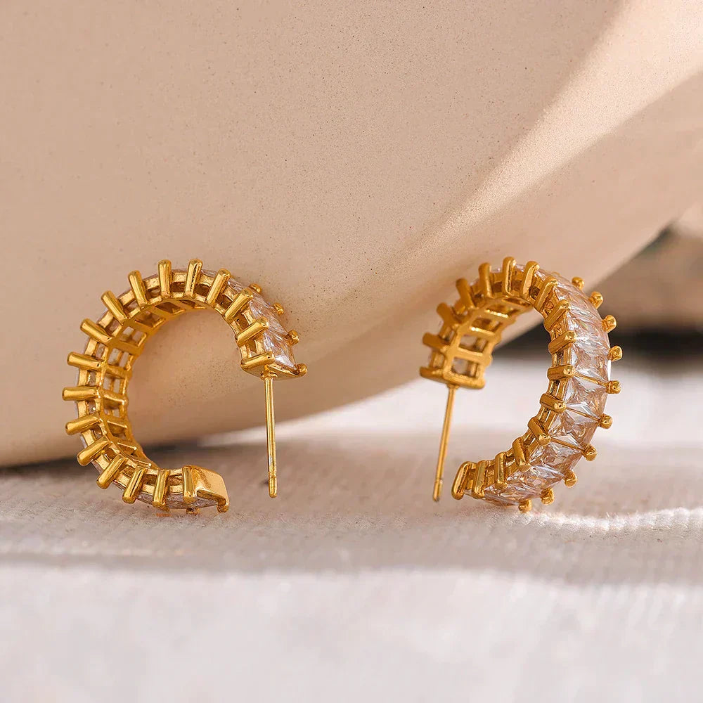 Um Brinco Argola com Zircônias Cúbicas é uma joia elegante e brilhante. As argolas, um clássico atemporal, são adornadas com zircônias cúbicas, que imitam o brilho de diamantes. Este design combina estilo e sofisticação, sendo uma escolha popular para looks versáteis. As zircônias adicionam um toque de glamour semelhante a pedras preciosas, tornando o brinco uma opção acessível e deslumbrante para diversas ocasiões. Hipoalergenico livre de níquel e chumbo.
