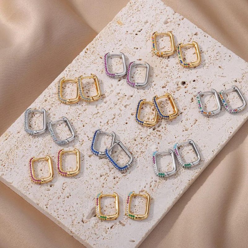 O brinco apresenta uma argola habilmente confeccionada em metal precioso, frequentemente ouro ou prata, que oferece durabilidade e um acabamento luxuoso. A argola é adornada com uma variedade de zircônias coloridas, estrategicamente cravejadas ao redor da superfície, criando um arco-íris de cores cintilantes.