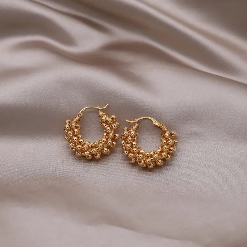 Cada brinco apresenta uma argola cuidadosamente confeccionada em metal dourado, que proporciona brilho e calor à peça. A sombra dourada adicionou um toque de glamour e sofisticação ao design, tornando-o perfeito para graça especial.