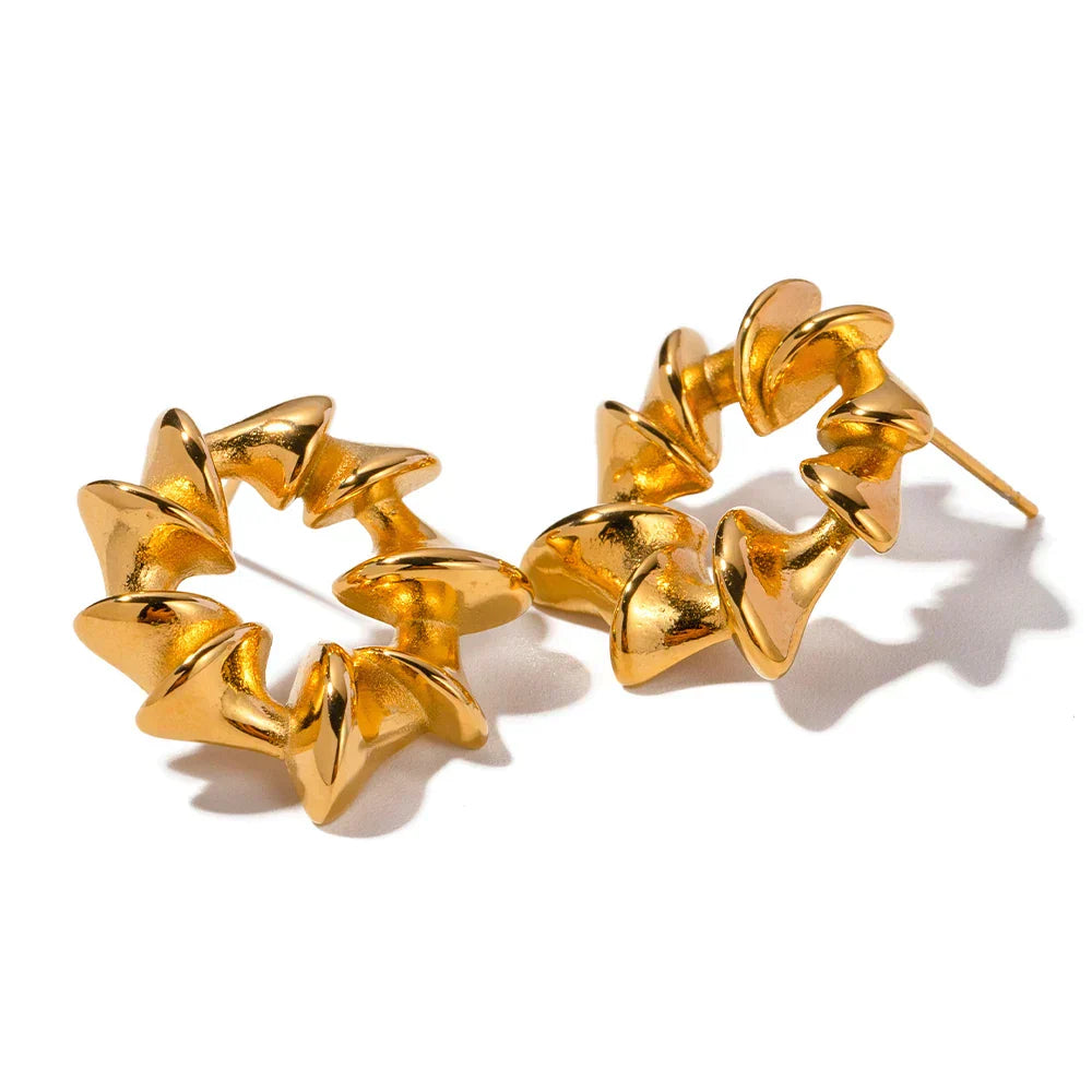 O Brinco Espiral Banhado a Ouro 18K é uma peça de joalheria que apresenta um design elegante e moderno. A forma espiral oferece um toque de sofisticação e originalidade, enquanto o banho de ouro 18 quilates confere um brilho luxuoso à peça. Este brinco combina estilo contemporâneo com a beleza clássica do ouro, proporcionando um visual versátil e elegante. Hipoalergênico livre de níquel e chumbo.