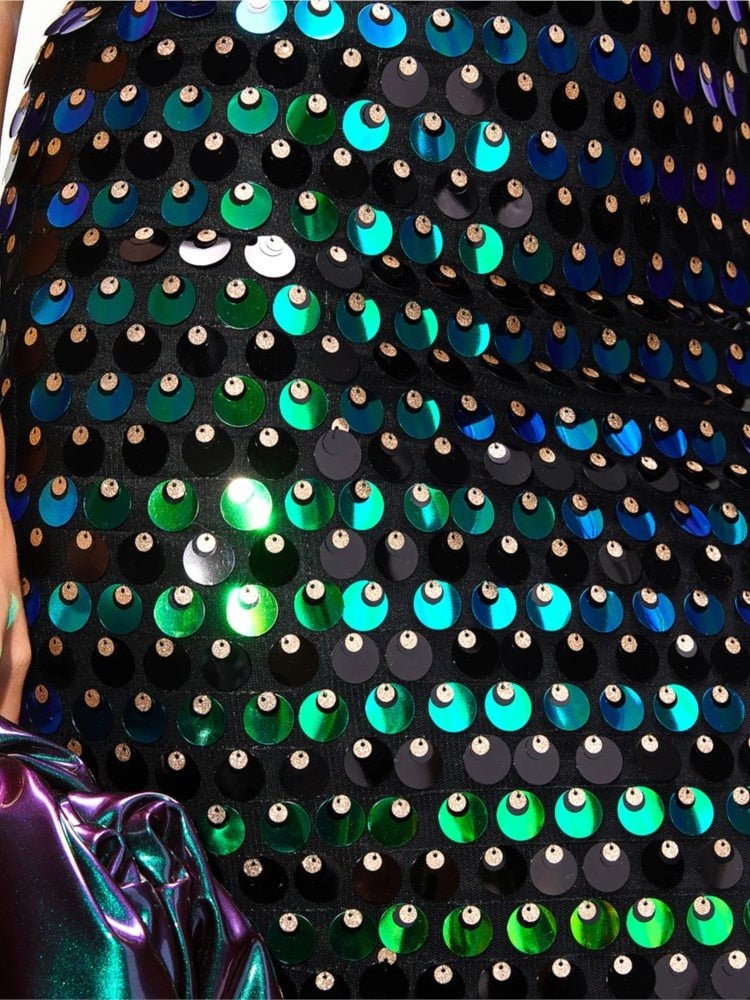 Vestido longo todo bordado retalhos de lantejoulas;