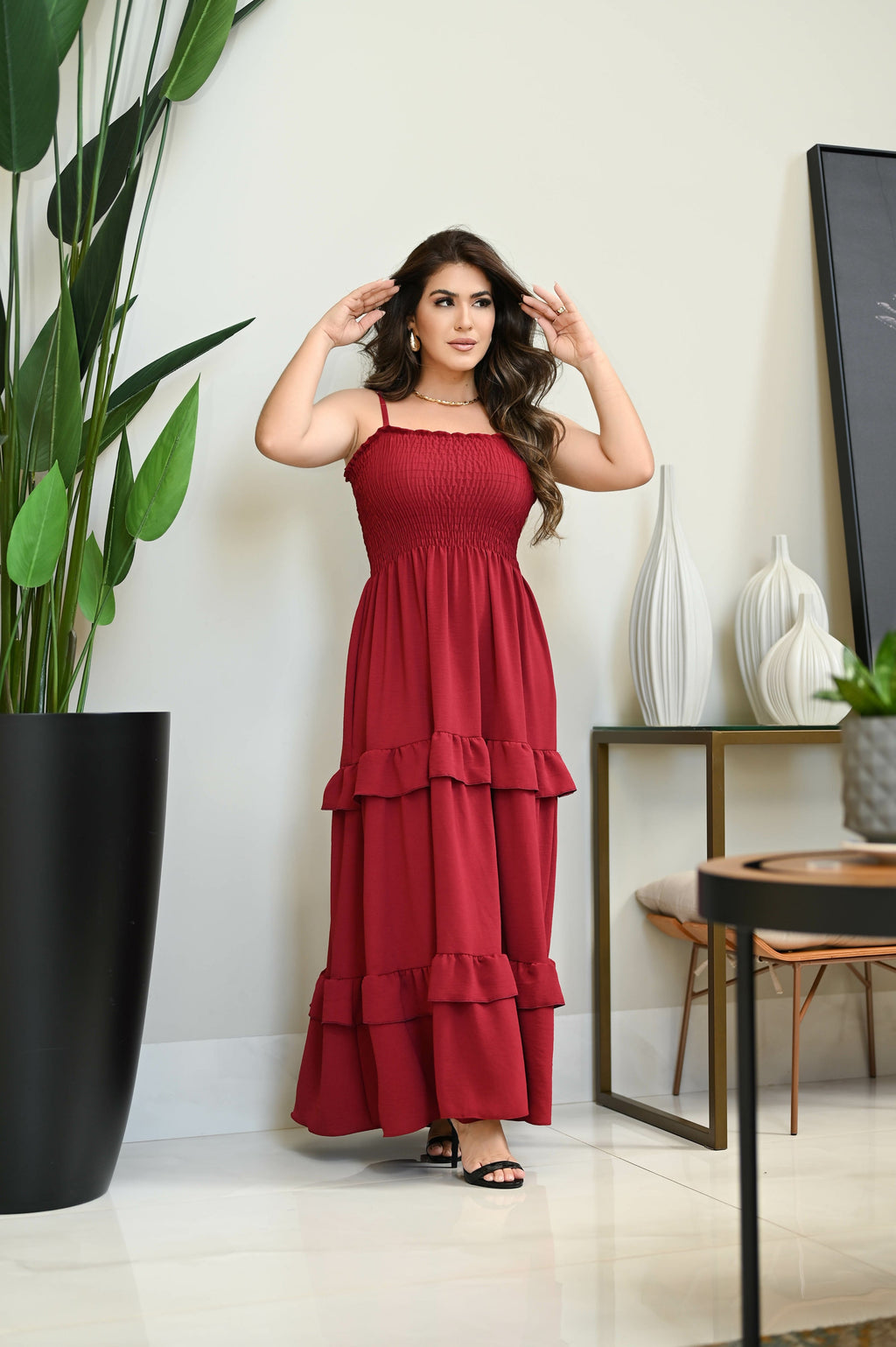 Vestido longo com lastex, região do busto feito em lastex e com bastante elasticidade. Um vestido confortável e tem a modelagem linda no corpo.